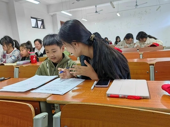 上午9点,辅导正式开始,在教学过程中,志愿者根据学生实际情况采用线上线下相结合的方式来调整教学方法与风格,并结合音频或者视频的形式,对小朋友开展针对性辅导教学,以增强学生对知识点的理解。课后,志愿者进行教学反思、归纳总结,以进一步提升后期教学质量。
