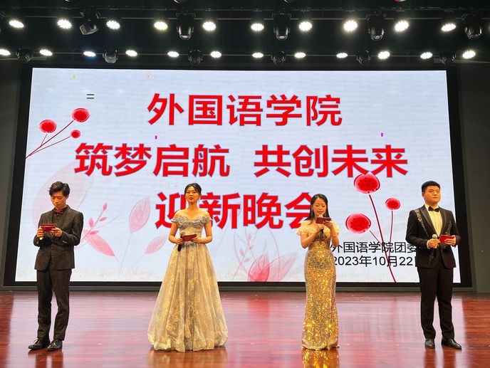 10月22日晚7点,永利yl23411集团2023年“筑梦启航·共创未来”迎新晚会在大学生活动中心大礼堂拉开帷幕。永利yl23411集团党委书记乔根,永利yl23411集团党委副书记、院长洪常春,永利yl23411集团党委副书记张文静,永利yl23411集团副院长王任傅,永利yl23411集团英语及日语专业教师以及全体专职辅导员出席晚会,师生800余人观看演出。