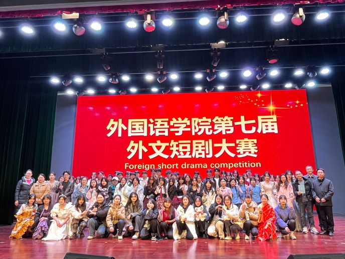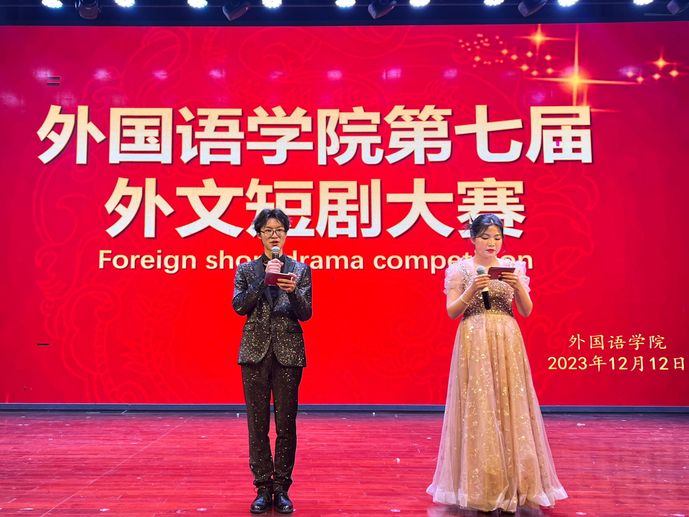 12月12日晚,永利yl23411集团在大学生活动中心大礼堂举办第七届外文短剧大赛决赛。永利yl23411集团党政领导、辅导员、部分专业教师出席此次外文短剧大赛。全校五百余名学生到场观看。