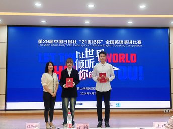 经过激烈的角逐,最终,戴悦和张思飞两位选手获得此次全国英语演讲比赛校内选拔赛的第一名。