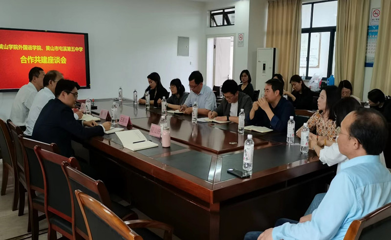 4月29日下午,永利yl23411集团与黄山市屯溪第五中学举行合作共建座谈会。永利yl23411集团书记乔根、副院长王任傅、英语教研室主任王毅聪、副主任程汕姗,屯溪五中副校长邓阳生、党支部专职副书记王效春、英语教研组长方志刚及该教研组全体老师出席了此次会议。会议由王效春主持。