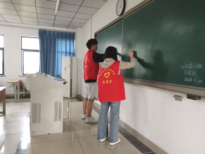 这次志愿清扫活动得到了学院学生的广泛参与和支持。数位志愿者自发组成清扫小组,分散在逸夫综合楼的教室与走廊,投入到清扫垃圾、擦洗黑板等卫生工作中。他们身着志愿服,手拿工具,齐心协力将教学楼打扫得干净整洁,焕发出勃勃生机。
