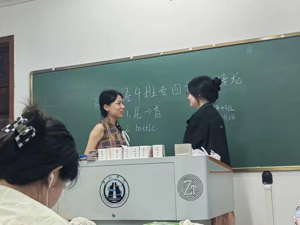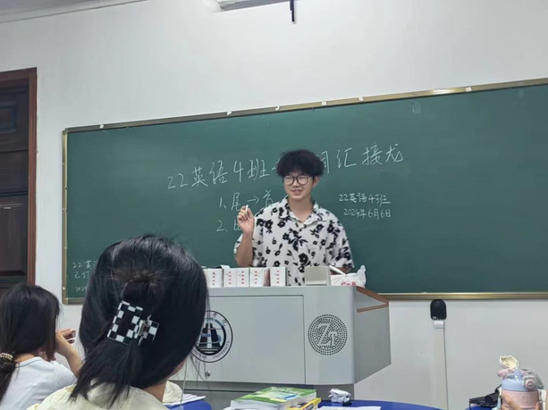 为迎接即将到来的专四考试,同时提高同学们的学习兴趣,2024年6月6日晚,22英语4班举行了一场别开生面的“专四词汇接龙大赛”。