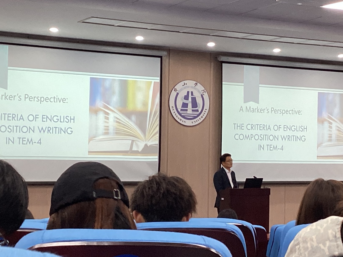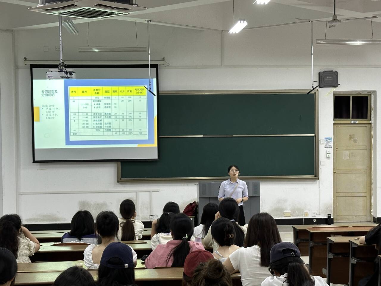 6月5日和6月12日,永利yl23411集团英语教研室分两次举办了英语专业四级(TEM-4)考前系列辅导讲座。讲座分别由王毅聪博士和程汕姗老师主讲,主要针对作文和阅读简答题。讲座旨在向英语专业学生传授TEM-4考试经验和方法,帮助他们在考试中取得更好的成绩。