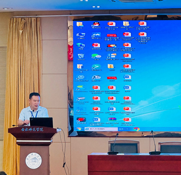 本次研讨会共有七场主旨发言报告。会上,电子科技大学胡杰辉教授、上海外国语大学冯庆华教授、上海外国语大学胡开宝教授、集美大学张海燕教授、淮北师范大学李书影教授、安徽大学詹全旺教授、安庆师范大学王先荣教授等围绕人工智能赋能外语学科研究与人才培养、人工智能技术在高校语言教学中的应用、大语言模型背景下外语学科的发展、外语学科师资跨学科发展路径等主题进行了专题报告或主旨发言。在分组研讨环节,洪常春、朱雁飞参与了人工智能背景下外语专业的发展与课程改革等专题研讨,洪常春在讨论会上发言。