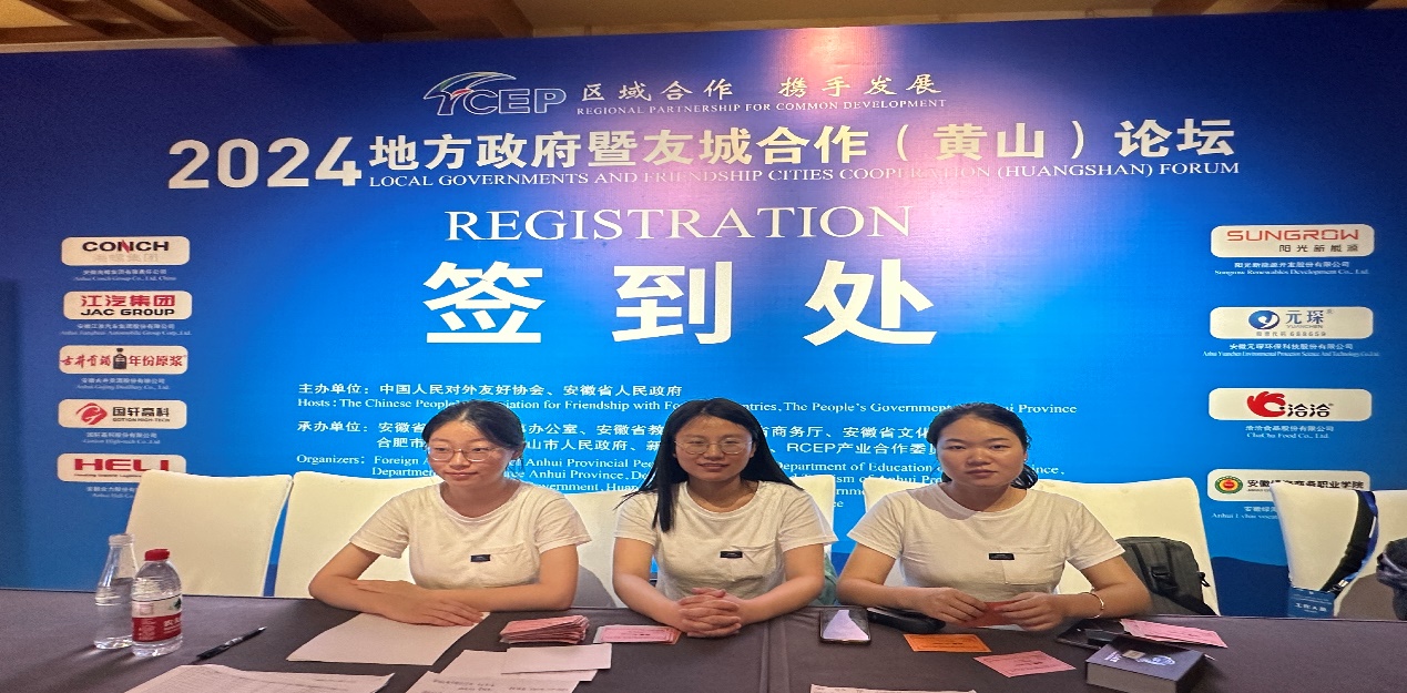6月20-21日,我院师生积极投身于2024RCEP地方政府暨友城合作(黄山)论坛的志愿服务工作,他们凭借青春的热情与专业的素养,为论坛的成功举办注入了强劲动力。