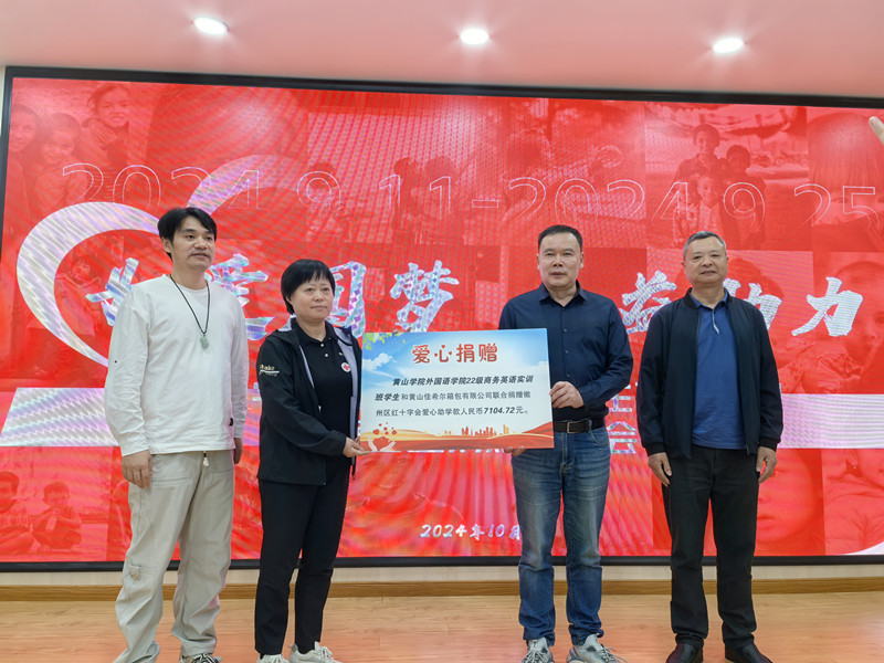 捐赠仪式上,洪常春向徽州区红十字会捐赠永利yl23411集团22商务英语实训班义卖款和黄山佳希尔箱包有限公司赞助款共计7104.72元;石丽玲为实训班各组代表颁发捐赠证书并就善款专用作表态发言;杨明为公益义卖活动点赞,希望每一位大学生都要在心中种下一颗爱心的种子。