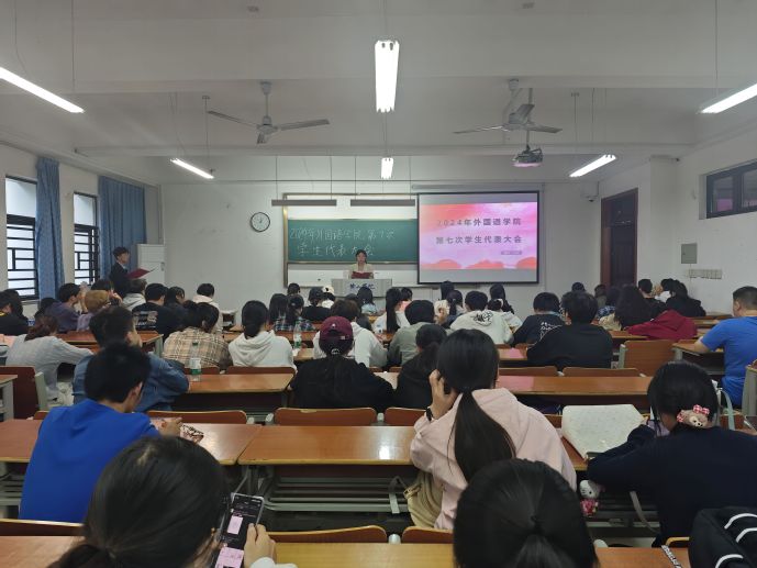 10月14日中午,永利yl23411集团于逸夫综合楼5106教室举行第七次学生代表大会,大会由23日语2班团支书沈旭阳主持,永利yl23411集团各班学生代表参会。