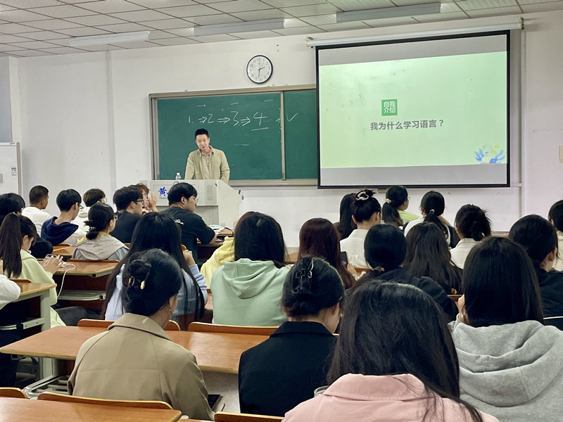 为促进校企合作,帮助学生深入了解翻译行业,明确自身职业规划,10月16日下午,逸夫楼5505教室举行了一场翻译行业认知宣讲活动。此次活动由深圳火星语盟科技股份有限公司项目经理向建涛主讲,该公司安徽分部经理丁君、市场部经理邓海涛,日语专业2022级、2023级、2024级学生参加宣讲会。