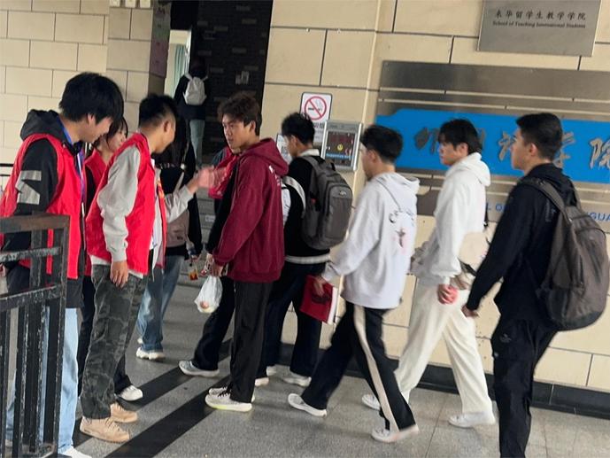 活动期间,永利yl23411集团学生会生活权益部志愿者每天清晨都会在各教学楼入口设立监督岗,对携带早餐进入教室的同学进行劝阻和引导。并引导他们在教室外吃完早餐再进教室。他们面带微笑,耐心地向同学们解释规定,并鼓励他们遵守校园规章制度,共同维护良好的学习环境。