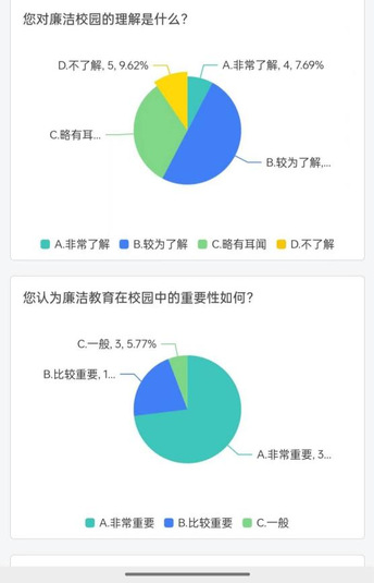 通过廉洁文化线上调查问卷了解学生对廉洁文化的认知情况,剖析当前廉洁文化教育存在的问题,并采取相应的改进措施,积极营造风清气正、充满正能量的校园环境。