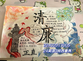 11月,举办“清风拂心海,廉洁照我行”手抄报征集活动。通过廉洁手抄报活动,不仅提高同学们对廉洁重要性的认识,加强廉洁文化的宣传与教育,让学生们更好地了解廉洁,知廉洁,懂廉洁。
